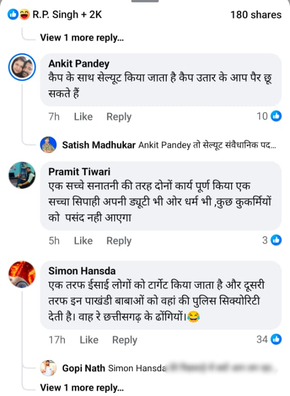 विवाद यहीं नहीं थमा। रायपुर के स्टेट हैंगर से सामने आए एक वीडियो में देखा जा सकता है कि एक वर्दीधारी पुलिसकर्मी जूते उतारकर बाबा बागेश्वर के पैर छूता है। वीडियो वायरल होने के बाद इस पर भी तीखी प्रतिक्रियाएं सामने आईं।