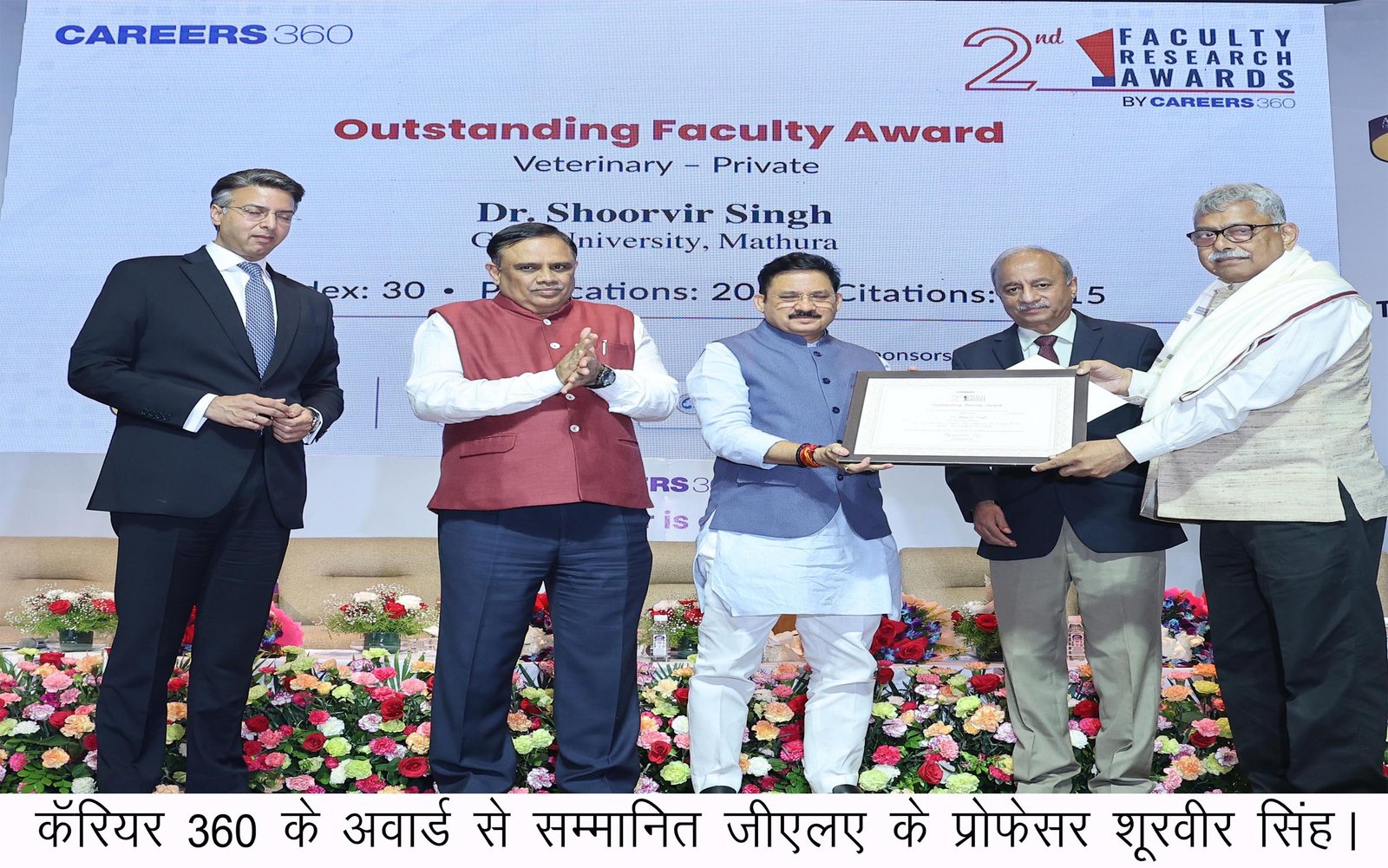 दैनिक उजाला, मथुरा : जीएलए विश्वविद्यालय, मथुरा के बायोटेक विभाग ने अनुसंधान के क्षेत्र में अपनी महती भूमिका निभाई है। इसी भूमिका के आधार पर नई दिल्ली स्थित एक कार्यक्रम में शैक्षिक जगत की प्रतिष्ठित पत्रिका कॅरियर 360 ने जीएलए के बायोटेक विभाग के विभागाध्यक्ष प्रो. शूरवीर सिंह को उत्कृष्ट अनुसंधान अवार्ड से सम्मानित किया है।