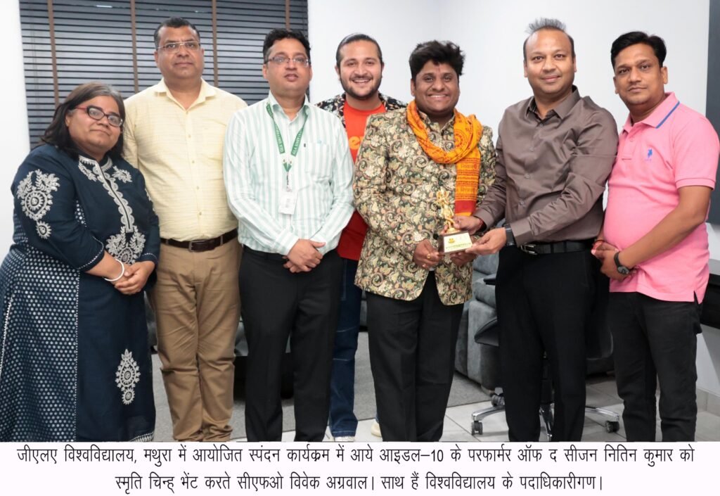 दैनिक उजाला, मथुरा : अपनी मधुर आवाज से प्रदेश व देश के लोगों का दिल जीत चुके रियलिटी शो इंडियन आइडल-10 के परफार्मर ऑफ द सीजन नितिन कुमार एवं प्रख्यात संगीतकार की आवाज का जादू ने जीएलए विश्वविद्यालय, मथुरा में आयोजित दो दिवसीय ‘स्पंदन‘ कार्यक्रम में ऐसी धूम मचाई कि विद्यार्थी अपनी जगह से खडे़ होकर झूमने लगे।