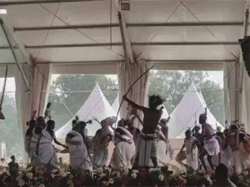 बिरसा मुंडा जयंती के अवसर पर आदिवासी नृत्य की प्रस्तुति भी दी जा रही है।