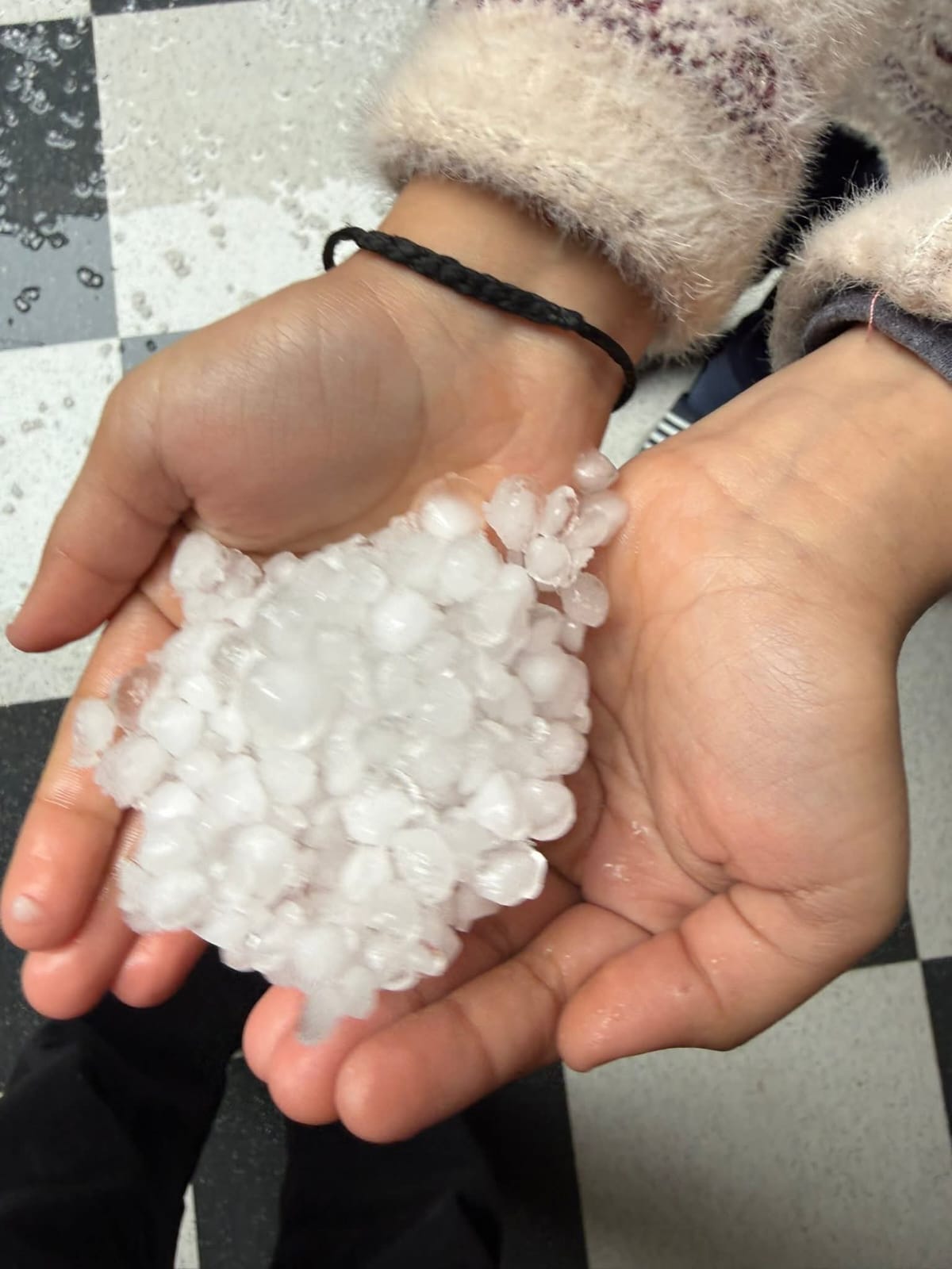 हिसार के उकलाना में मच्छरदानी में इकट्ठा हुए ओले।