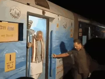 रेलवे स्टेशन से अपनी गाड़ी में रवाना होते केंद्रीय मंत्री मनोहर लाल।