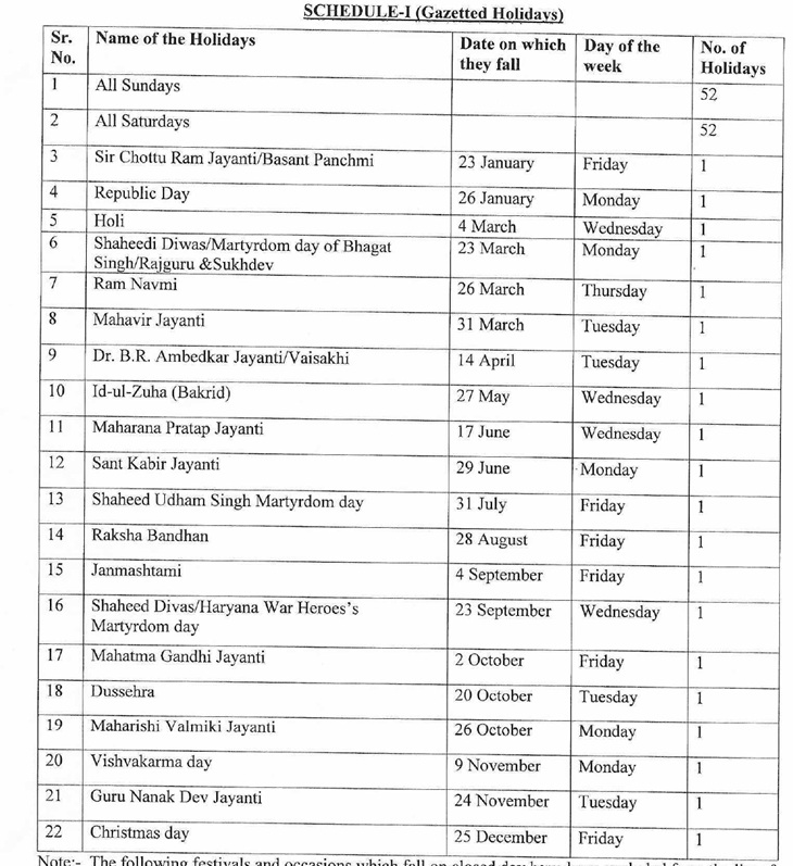 हरियाणा में 2026 की सरकारी छुट्टियों का कैलेंडर जारी:साल में 153 दिन छुट्‌टी, दिवाली समेत 8 गजटेड हॉलिडे संडे को, 13 रिस्ट्रिक्टेड छुटि्टयां