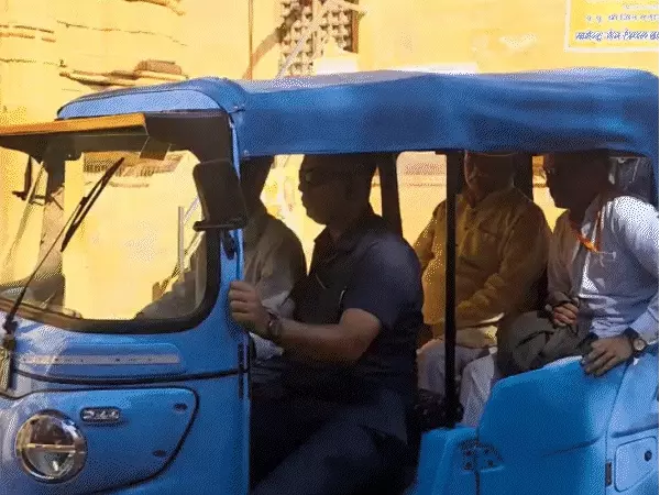 RSS प्रमुख मोहन भागवत ई-रिक्शा से जैसलमेर किले में पहुंचे।