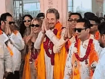 हनुमानगढ़ी में दर्शन-पूजन करते इरॉल मस्क।