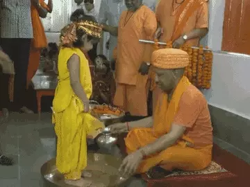 गोरखपुर : शारदीय नवरात्रि की आज महानवमी है। CM योगी ने गोरखपुर के गोरखनाथ मंदिर में कन्या पूजन किया। योगी ने 9 कन्याओं और 1 बटुक को चुनरी ओढ़ाई। उनके पांव धोकर आशीर्वाद लिया। योगी खुद कन्याओं और बटुक को परोसकर भोजन करा रहे हैं। उन्हें दक्षिणा देकर विदा करेंगे।