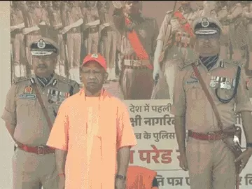 सीएम योगी ने लखनऊ में खुली जिप्सी में परेड का निरीक्षण किया।