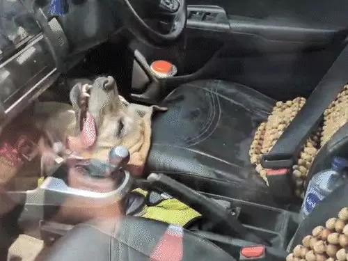 कार का गेट खोलने पर डॉग बेसुध ड्राइविंग सीट और स्टेयरिंग के बीच पड़ा मिला।
