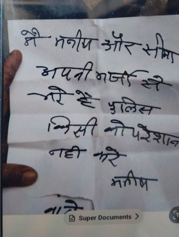 पुलिस को तीन सुसाइड नोट मिले हैं। पहला रसोई की दीवार पर लिखा था, जिसमें कहा गया कि मैं मनीष और सीमा अपनी मर्जी से मरे हैं और पुलिस किसी को परेशान न करे। दूसरा नोट कागज पर मिला, जिसमें भी यही बातें लिखी थीं। इसके अलावा, सुसाइड से पहले का एक वीडियो भी सामने आया है, जिसमें मनीष ने दुखों से परेशान होकर जान देने की बात कही है।