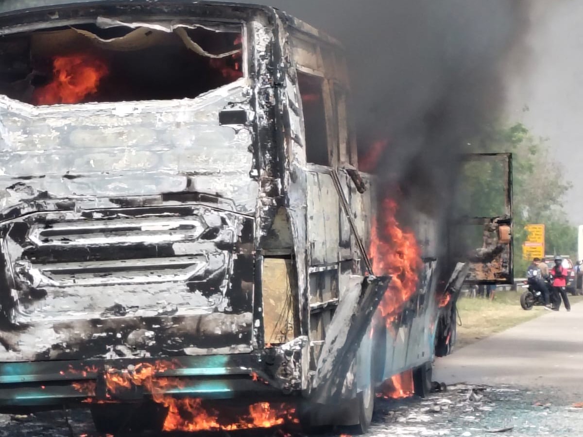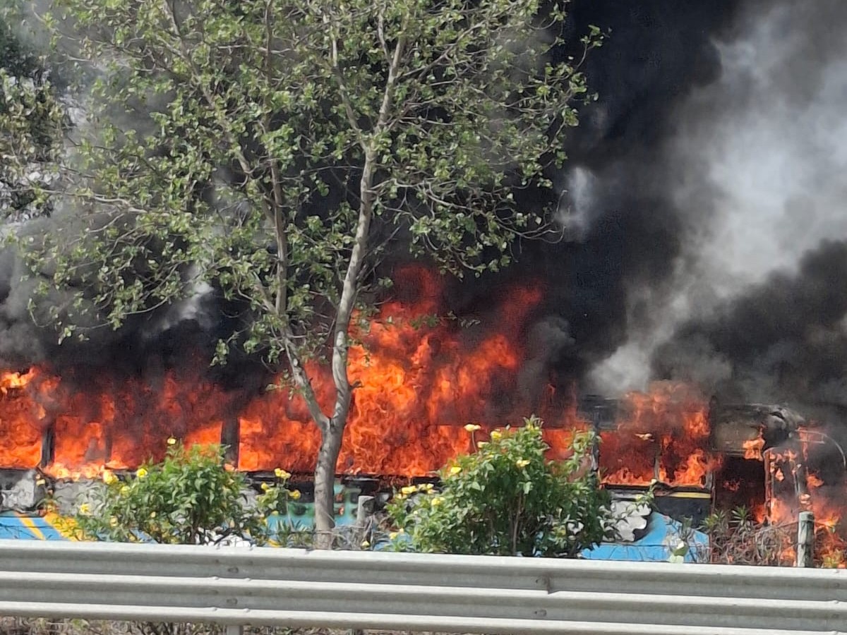 यह घटना माइलस्टोन संख्या 64 के पास हुई, जहां बस संख्या DD01AA9317 में अचानक आग की लपटें उठने लगीं। कटैलिया निवासी यशपाल सिंह ने दूरभाष के माध्यम से पुलिस को इसकी सूचना दी।