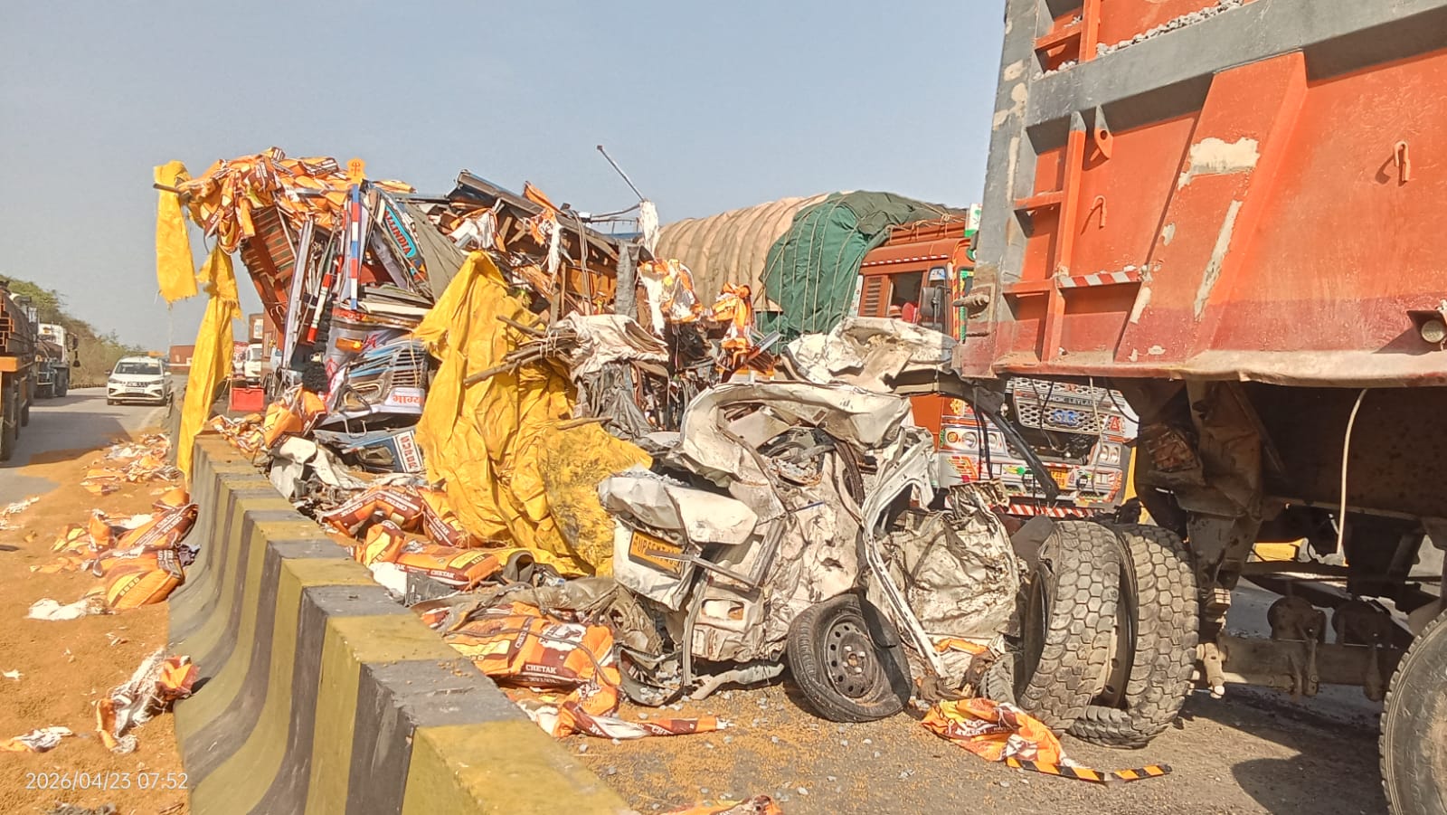 हादसे के बाद सुबह तक हाईवे पर गाड़ियां पड़ी रहीं। स्विफ्ट कार बुरी तरह पिचक गई। ट्रक भी बुरी तरह क्षतिग्रस्त हो गया।