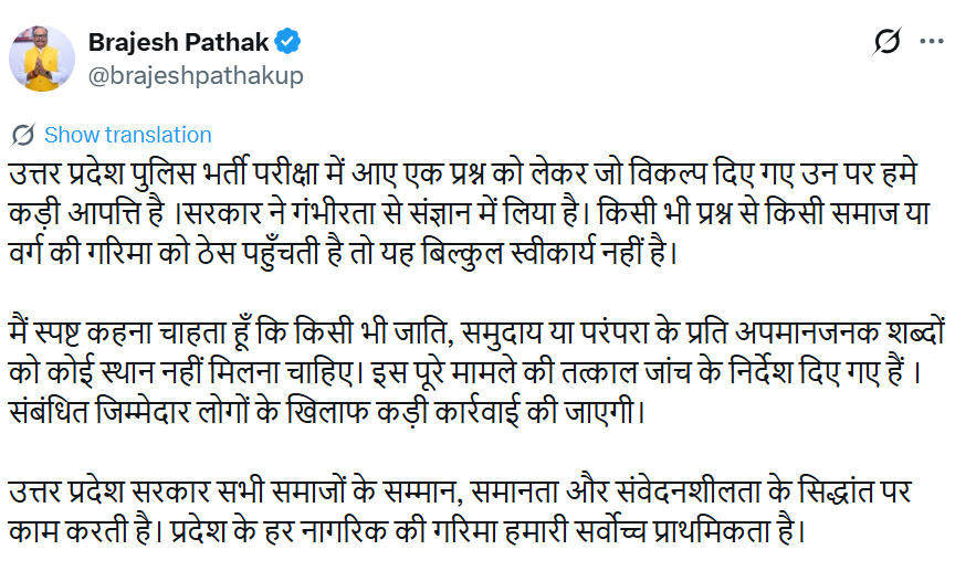 इस बीच, यूपी पुलिस भर्ती और प्रोन्नति बोर्ड ने सोशल मीडिया पर वायरल प्रश्न-पत्र को फर्जी करार दिया। ‘X’ पर फर्जी पेपर शेयर कर बोर्ड ने लिखा-
