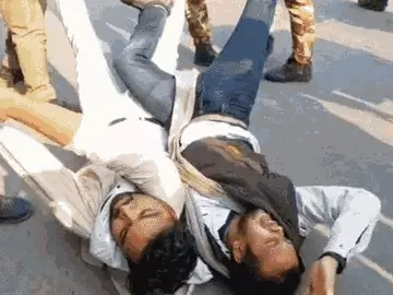 पुलिसकर्मियों ने कांग्रेसी कार्यकर्ताओं को सड़क पर घसीटा। NSUI के राष्ट्रीय अध्यक्ष वरुण चौधरी का कंधा पकड़कर पुलिसवालों ने धक्का दे दिया, वह गिर पड़े। इसके बाद बचने के लिए भागे, लेकिन पुलिसकर्मियों ने उन्हें पकड़ लिया। पुलिस 10 गाड़ियों में 100 से ज्यादा कांग्रेस कार्यकर्ताओं को भरकर ले गई।