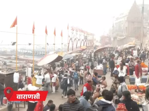 वाराणसी में ठंड और शीतलहर के बीच श्रद्धालु गंगा घाट पर स्नान के लिए पहुंच रहे हैं। तस्वीर दशाश्वमेध घाट की है।
