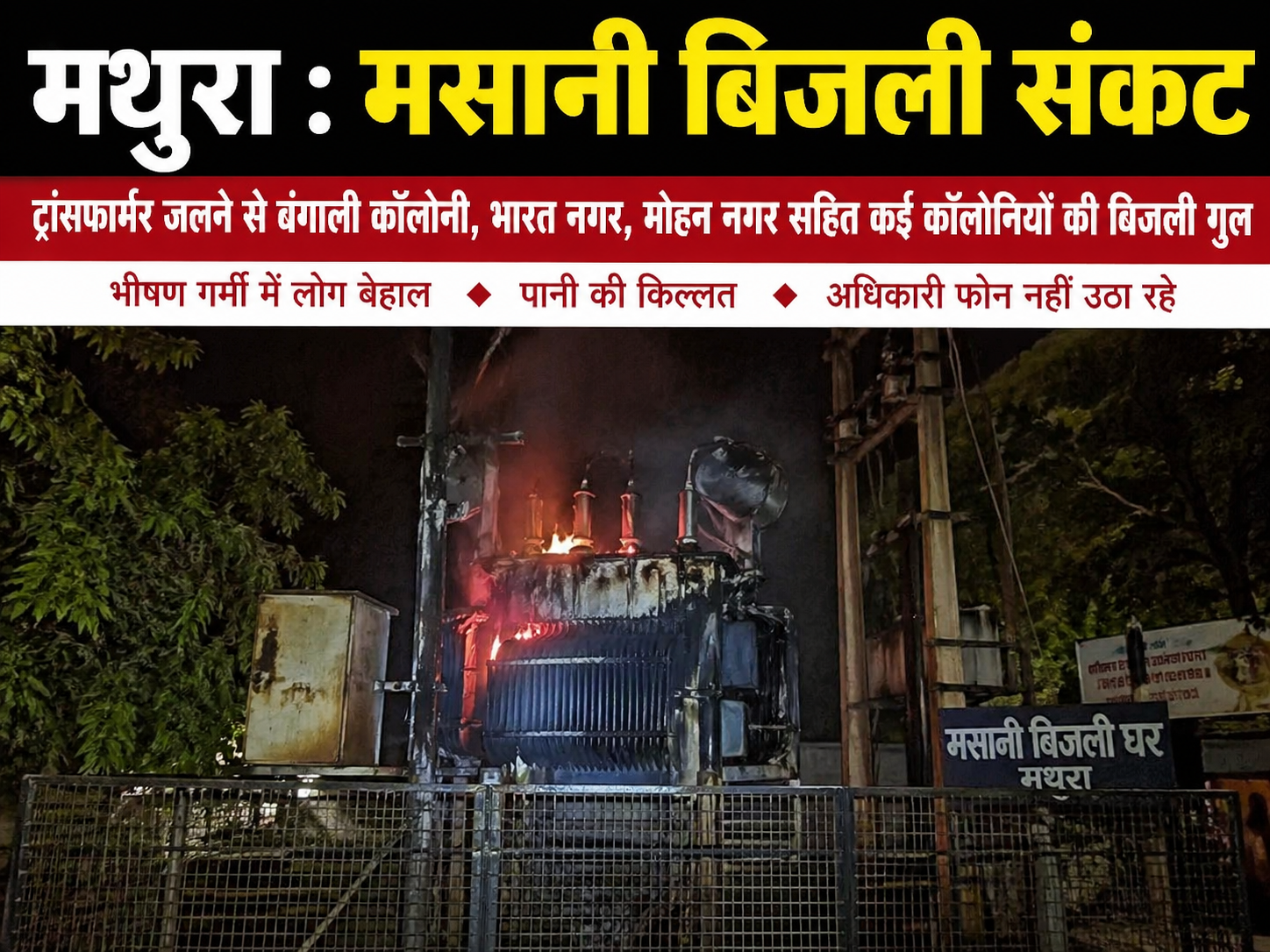 दैनिक उजाला, मथुरा : शहर के मसानी बिजलीघर से जुड़े बिरला मंदिर के समीप लगा ट्रांसफार्मर बीती रात्रि अचानक जल गया, जिससे बंगाली कॉलोनी, भारत नगर, मोहन नगर समेत करीब 4 से 5 कॉलोनियों की बिजली आपूर्ति पूरी तरह ठप हो गई। रातभर से अंधेरे में डूबे इन इलाकों के हजारों लोग भीषण गर्मी के बीच भारी परेशानियों का सामना कर रहे हैं।