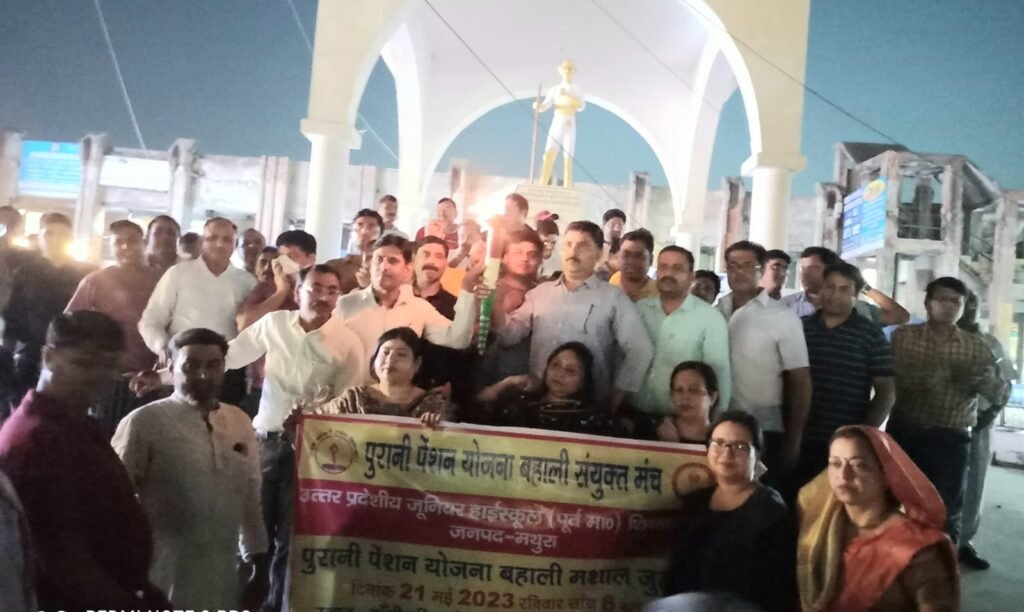 मथुरा : पुरानी पेंशन योजना बहाली संयुक्त मंच के तत्वाधान में पुरानी पेंशन योजना बहाली हेतु जनपद मथुरा में विशाल मशाल जुलूस निकाला गया।