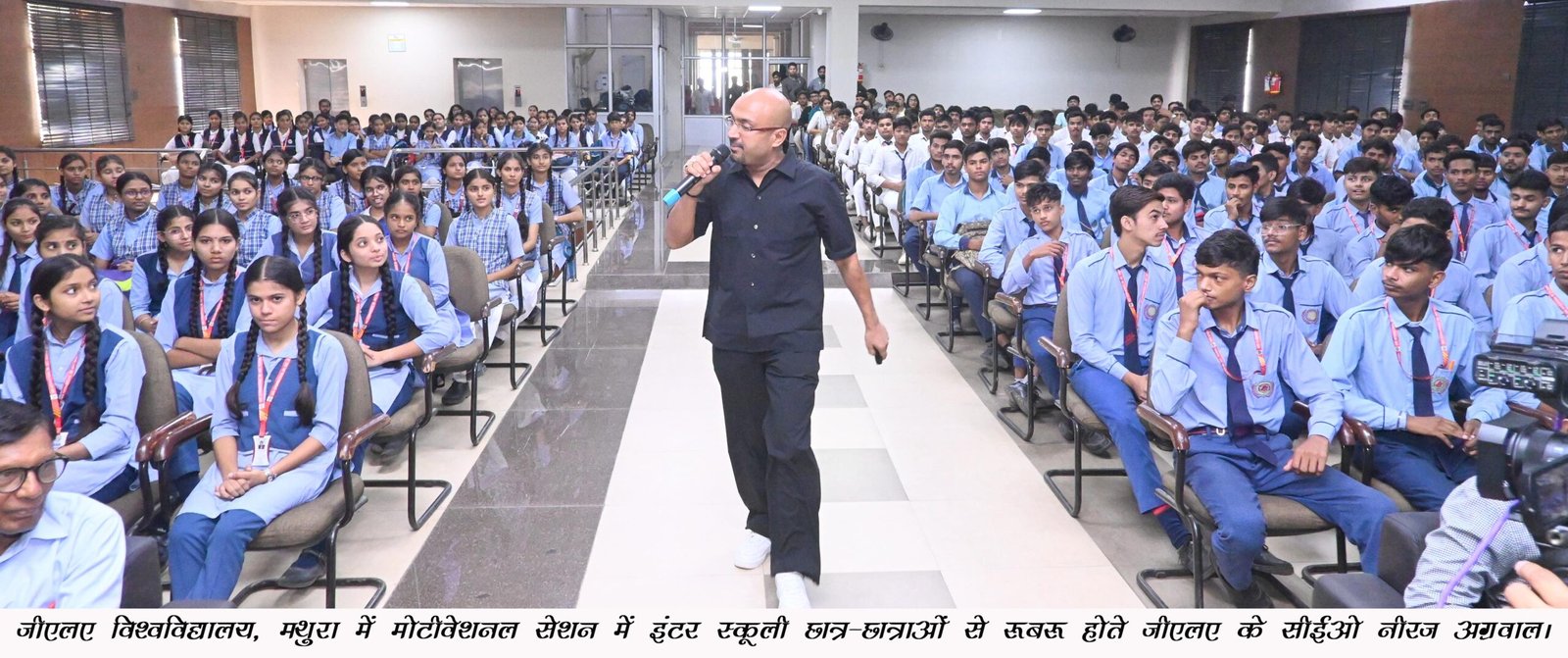 मथुरा के कई विद्यालयों से बड़ी संख्या में छात्र-छात्राओं ने इसमें भाग लिया। कार्यक्रम के मुख्य वक्ता विश्वविद्यालय के मुख्य कार्यकारी अधिकारी नीरज अग्रवाल रहे, जिन्होंने अपने जीवन के अनुभवों, संघर्षों और प्रेरणादायक किस्सों से छात्रों को ऊर्जा और नई दिशा दी। उन्होंने छात्रों को समझाया कि जीवन केवल दिन काटने का नाम नहीं है, बल्कि हर दिन को सार्थक और लक्ष्यपूर्ण बनाना ही असली जीवन जीना है।
