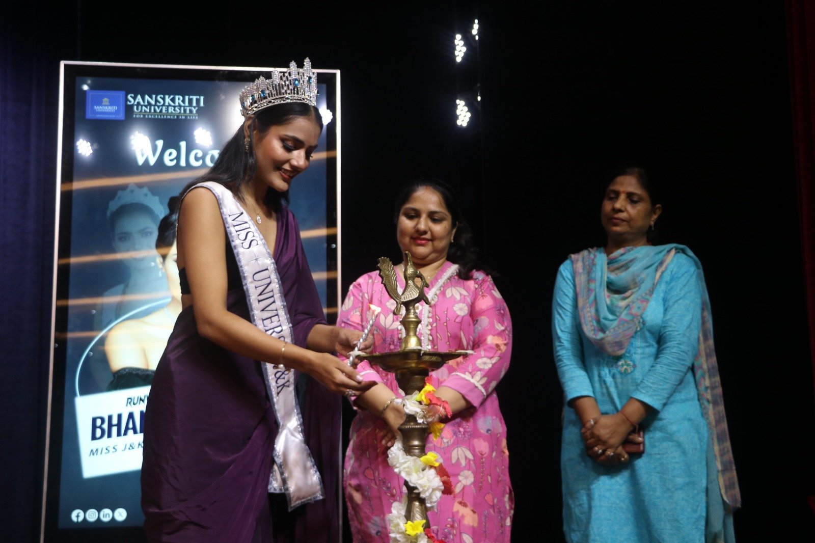 दैनिक उजाला, मथुरा : मिस जम्मू एंड कश्मीर और मिस युनिवर्स इंडिया की मेगा फाइनेलिस्ट भान्वी भारद्वाज ने संस्कृति विश्वविद्यालय के संतोष मैमोरियल सभागार में अपने जोरदार स्वागत के बाद विद्यार्थियों के सवालों का जवाब देते हुए कहा कि शिक्षा आपके आत्मविश्वास को बढ़ाती है और आत्मविश्वास हासिल करने के बाद आप अपनी सोची हुई मंजिल हासिल कर लेते हैं। अपने सपने पूरे करने के लिए अपनों का साथ होना बहुत महत्व रखता है। जो ठान लो उसको पूरा करने के लिए अपना सबकुछ लगा देना चाहिए।