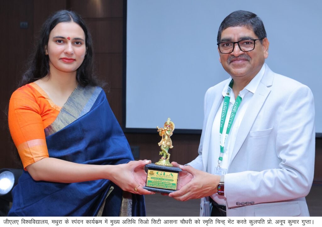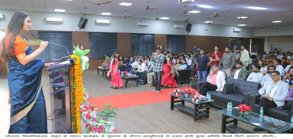 कुलपति प्रो. अनूप कुमार गुप्ता ने कहा कि यह स्पंदन जीएलए का वार्षिक सांस्कृतिक उत्सव है। जब अपने अल्यूमिनाई को विश्वविद्यालय में इतने गरिमामय और सुसज्जित रूप में देखता हूं, तो यह हम सभी के लिए अत्यंत भावुक क्षण होता है। इससे यह महसूस होता है कि उन्होंने यहां से कुछ विशेष और महत्वपूर्ण सीखा है। आज यही अल्यूमिनाई निश्चित रूप से हमारे वर्तमान विद्यार्थियों को बड़े सपने देखने और ऊंचाइयों को प्राप्त करने के लिए प्रेरित करेंगे।