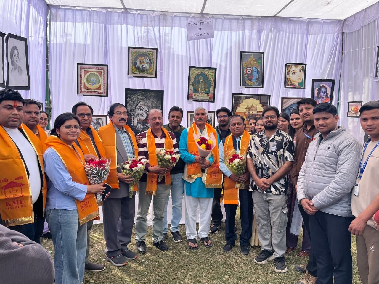 दैनिक उजाला, मथुरा : छह दिवसीय कृदय-2.0 वार्षिकोत्सव की श्रृंखला में आज केएम विश्वविद्यालय परिसर में रंगों और कल्पनाओं का एक अनूठा संगम देखने को मिला। विवि के फाइन आर्ट्स डिपार्टमेंट द्वारा तीन दिवसीय ‘चित्रकला संगम’ आर्ट एक्जीविशन का आयोजन किया गया, जिसमें बीएफए छात्रों ने अपनी कलात्मक प्रतिभा का ऐसा जबरदस्त प्रदर्शन किया कि कला प्रेमियों का दिल भी जीत लिया।