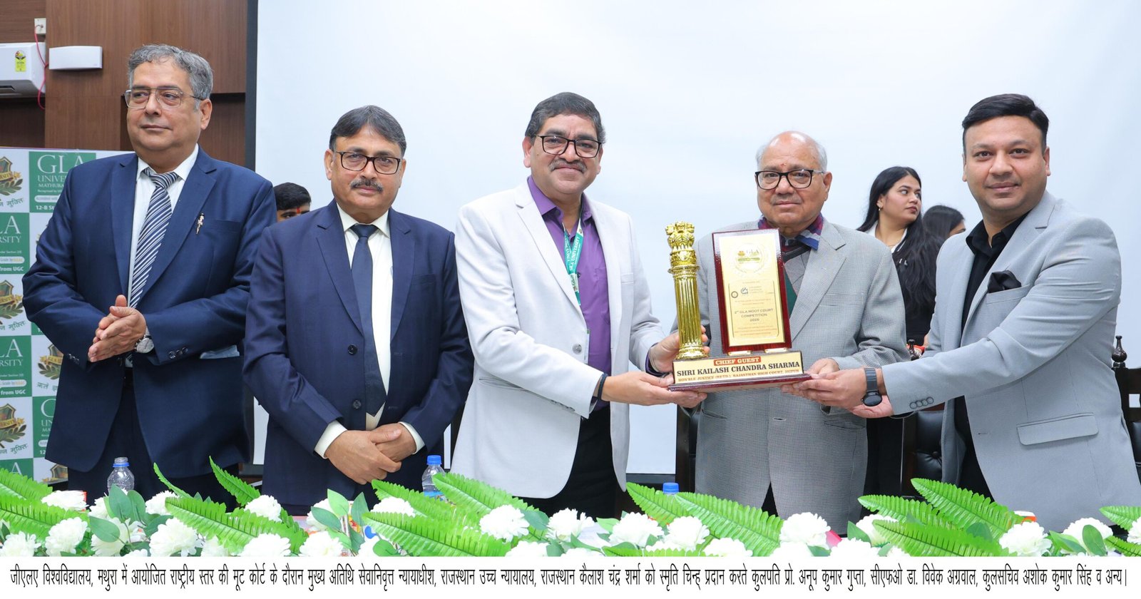 गेस्ट ऑफ ऑनर सेवानिवृत्त प्रधान न्यायाधीश, फैमिली कोर्ट, नई दिल्ली मनमोहन शर्मा ने कहा कि मूट कोर्ट प्रतियोगिताएं छात्रों की आलोचनात्मक सोच, तर्क प्रस्तुत करने की क्षमता और आत्मविश्वास को मजबूत करती हैं। उन्होंने नियमित अभ्यास, अनुशासन और नैतिक मूल्यों को अपनाने की सलाह देते हुए जीएलए विश्वविद्यालय द्वारा आयोजित इस प्रतियोगिता की सराहना की।
