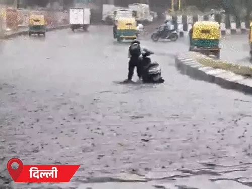 दिल्ली में दोपहर करीब 12 बजे से बारिश शुरू हुई। एक घंटे से भी कम समय में जखीरा अंडरपास में पानी भर गया। सड़क पर बाइक, ऑटो सहित सभी गाड़ियों के चालक मशक्कत करते दिखे।