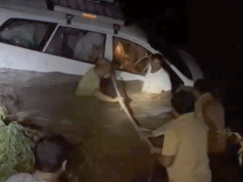 गुजरात के भावनगर में कार बही, गांववालों ने तीन लोगों को बचाया