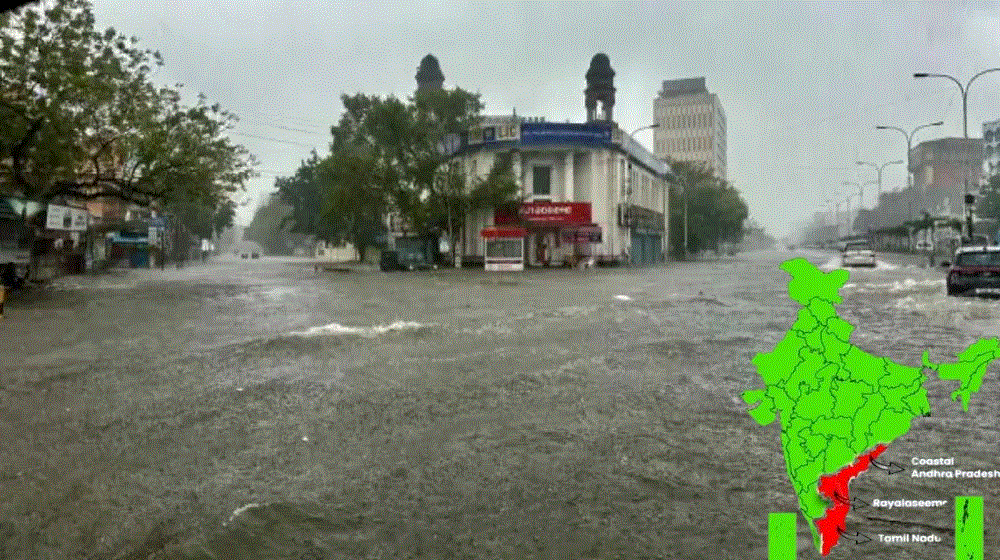 चक्रवाती तूफान मिचौंग आज आंध्रप्रदेश और तमिलनाडु के तट से टकरा सकता है। इस दौरान 100 से 110 किलोमीटर प्रतिघंटा की गति से हवाएं चलने की संभावना है। तटीय क्षेत्रों में 10 तक पानी बढ़ सकता है। इस आशंका को देखते हुए भारतीय मौसम विज्ञान विभाग ने तेलंगाना, तमिलनाडु, पुडुचेरी और आंध्रप्रदेश में भारी बारिश का रेड अलर्ट जारी किया है। प्रधानमंत्री नरेंद्र मोदी ने भी इन प्रदेशों के मुख्यमंत्री के साथ बात की है। हर तरह से तैयार रहने और सहायता देने का आश्वासन दिया है।