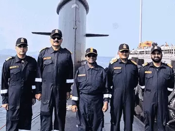 राष्ट्रपति नौसेना की वर्दी पहनकर पनडुब्बी में पहुंचीं। P75 स्कॉर्पीन प्रोजेक्ट की छठी और अंतिम पनडुब्बी INS वाघषीर को जनवरी में नौसेना में शामिल किया गया था।
