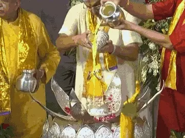 चांदी से बनी कामधेनु गाय के दूध से भगवान का अभिषेक किया गया।