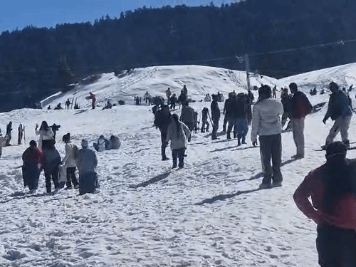 जम्मू कश्मीर के नथाटॉप में ताजा बर्फबारी हुई।