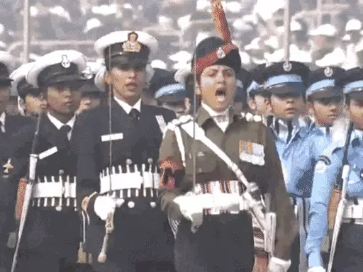 परेड का आगाज 100 महिला म्यूजिशियन ने शंख, नगाड़े और दूसरे पारंपरिक वाद्य यंत्रों के साथ किया। 100 महिलाओं ने अपने पारंपरिक पहनावे में लोक नृत्य किया।