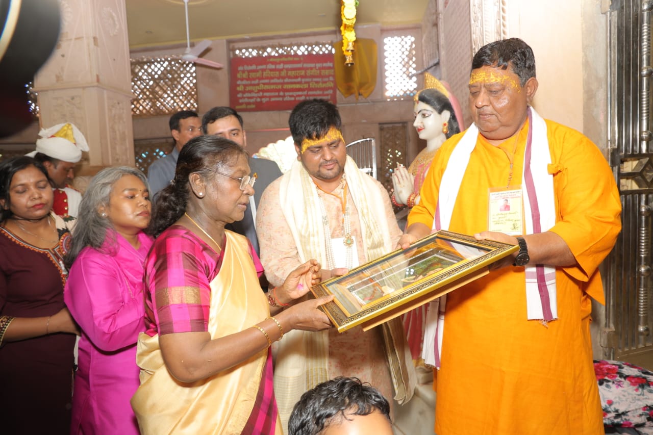 मंदिर कमेटी के अध्यक्ष और सदस्यों ने राष्ट्रपति मुर्मू को बांके बिहारी जी की छवि भेंट की।