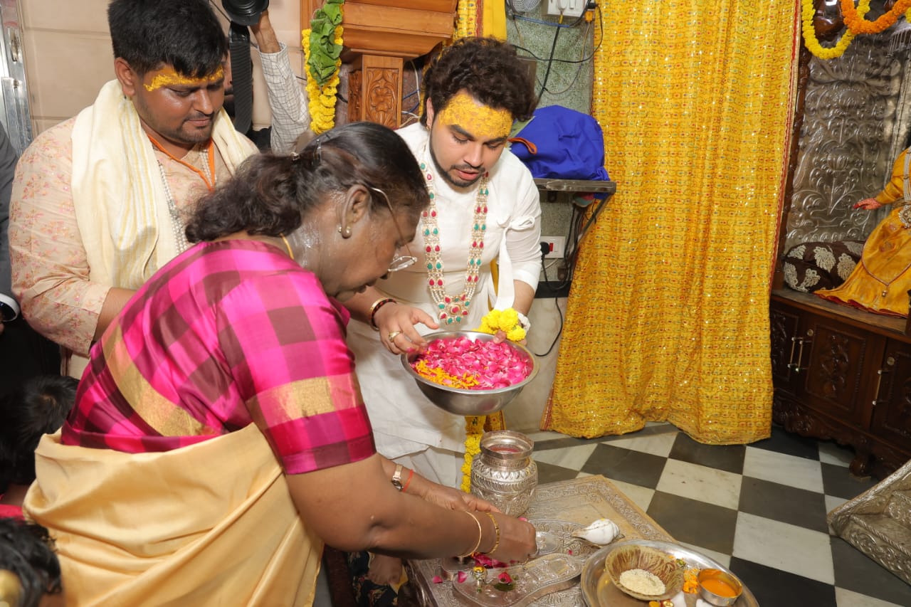 बांके बिहारी मंदिर में दर्शन के बाद राष्ट्रपति मुर्मू ने आरती की।