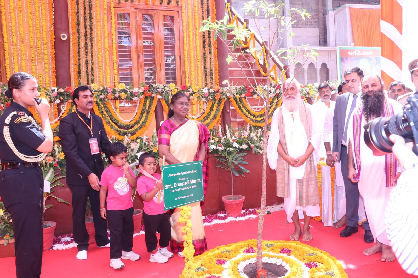 राष्ट्रपति द्रौपदी मुर्मू ने सुदामा कुटी में पारिजात का पौधा लगाया।