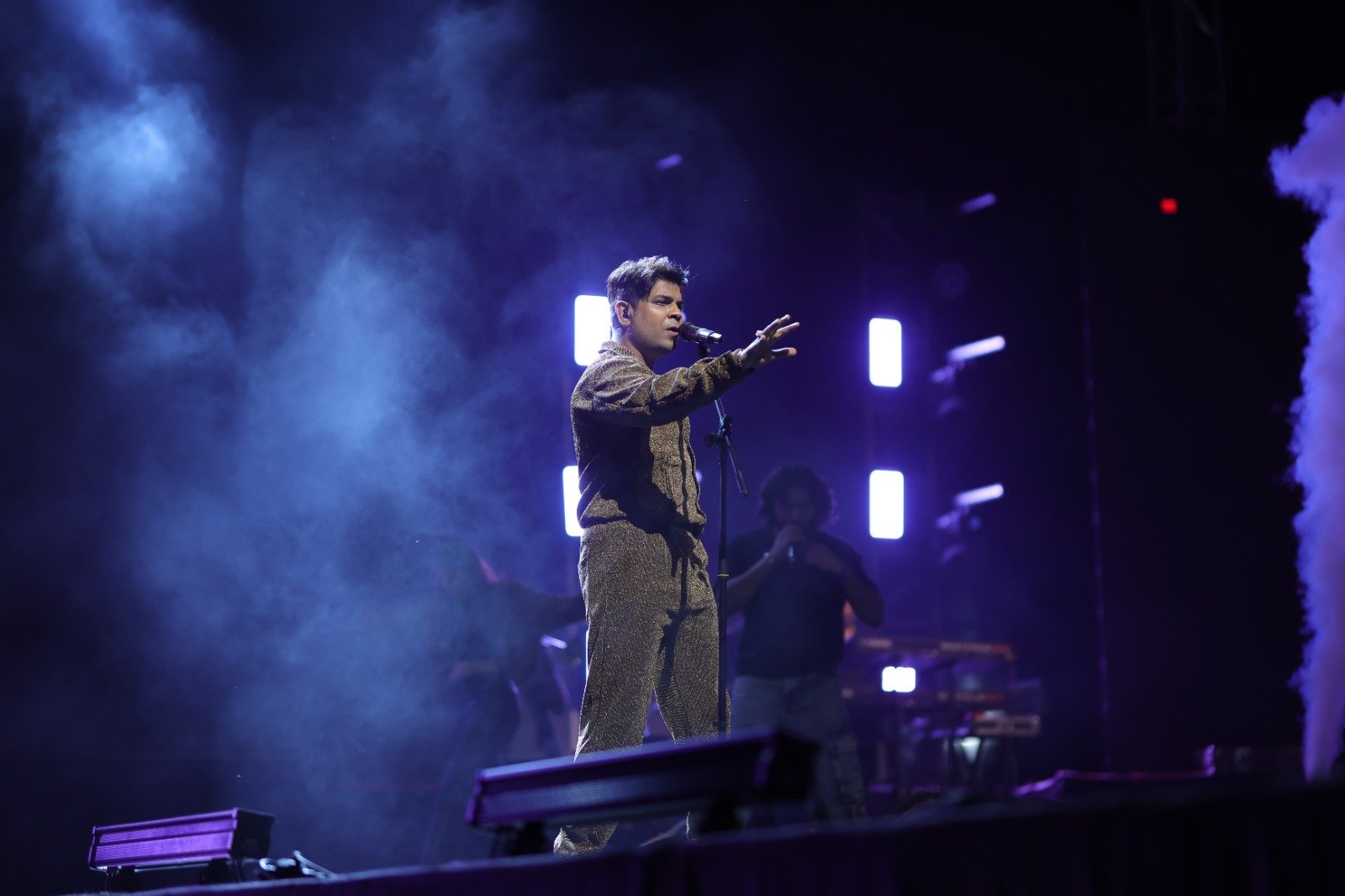 मथुरा : बालीवुड के लोकप्रिय गायक अंकित तिवारी ने संस्कृति विवि के स्पार्क 2026 में अपने दिल छूने वाले गीतों से चारचांद लगा दिए। विश्वविद्यालय के छात्र-छात्राएं गीतों के जादू में ऐसे खोए कि कब रात का एक बज गया पता ही नहीं चला। 16 वोल्ट के धमाकेदार संगीत की धुनों पर एक के बाद एक प्रसिद्ध गीतों को अंकित तिवारी ने ऐसा लड़ी में पिरोया कि लोग बस सुनते रह गए।