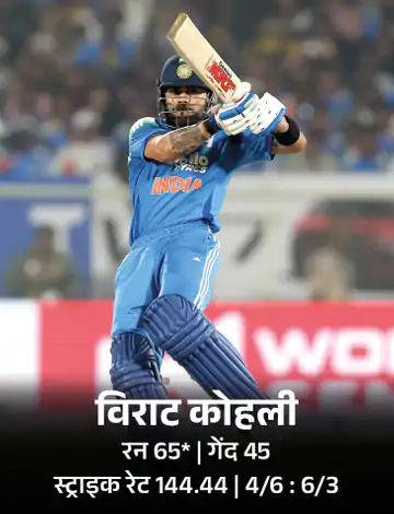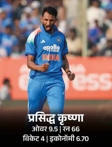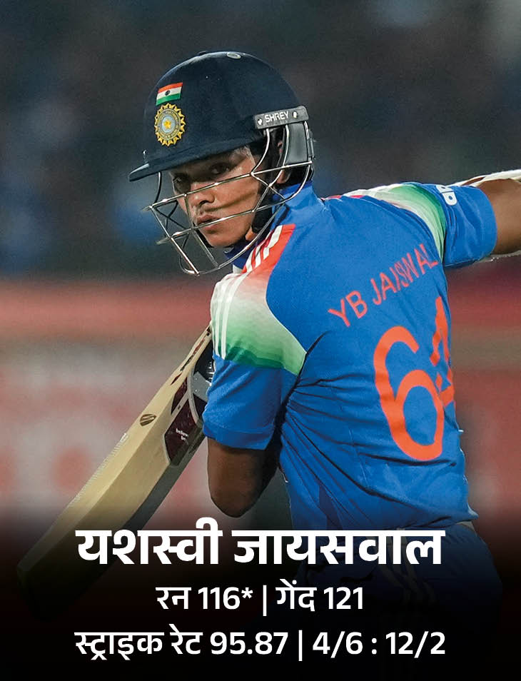 271 रन के टारगेट के सामने यशस्वी जायसवाल और रोहित शर्मा ने भारत को मजबूत शुरुआत दिलाई। दोनों ने 155 रन की पार्टनरशिप की। रोहित 75 रन बनाकर आउट हुए, यह सीरीज में उनकी पहली फिफ्टी रही। यशस्वी ने फिर 111 गेंद पर अपने वनडे करियर का पहला शतक लगाया। उनके सामने विराट कोहली ने महज 40 गेंद पर फिफ्टी लगा दी। दोनों ने 40वें ओवर में टीम को जीत दिला दी।