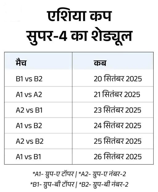 - दूसरा मैच: एशिया कप में लीग स्टेज के बाद सुपर-4 राउंड होगा। भारत-पाकिस्तान के सुपर-4 राउंड में पहुंचने पर 21 सितंबर को भारत-पाकिस्तान की दूसरी भिड़ंत हो सकती है।