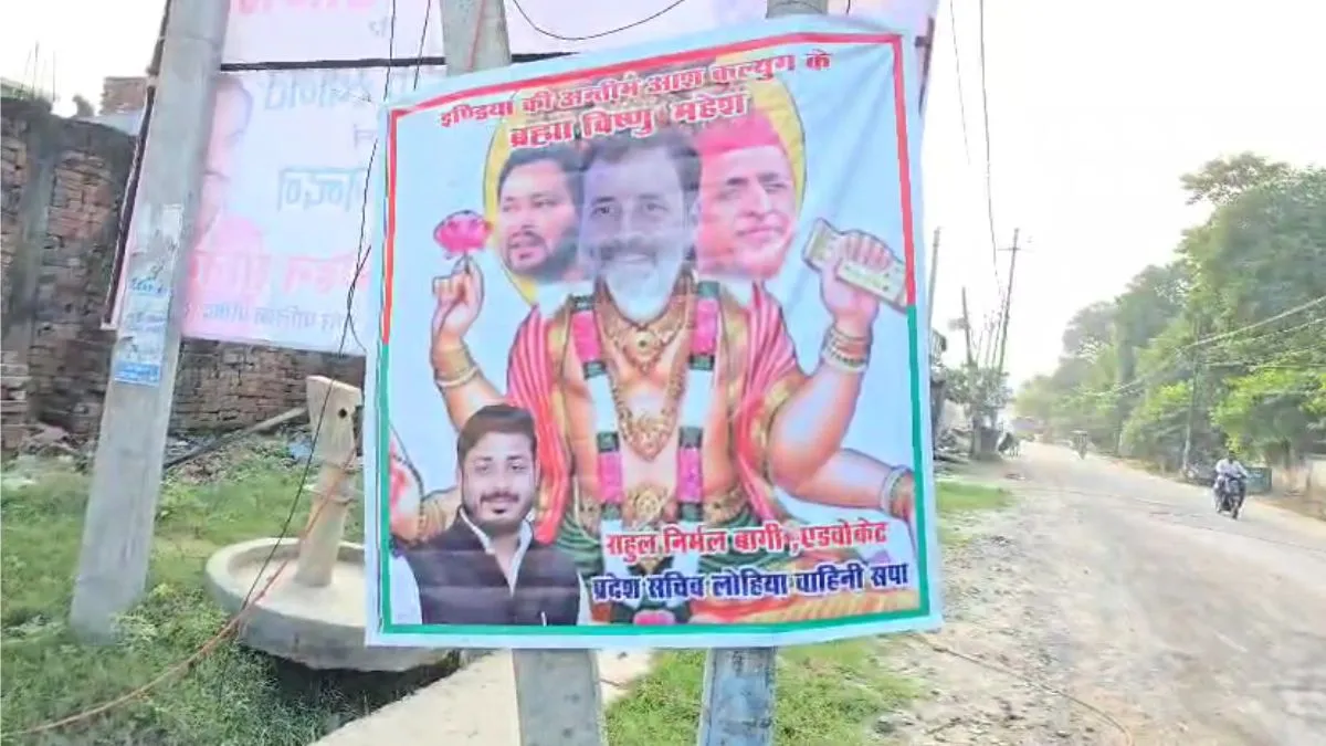 सांसद राहुल गांधी के रायबरेली दौरे के पहले शहर में एक अलग तरह के पोस्टर चर्चा का विषय बन गए हैं। पोस्टर में तेजस्वी, राहुल गांधी व अखिलेश यादव को भगवान का दर्जा दिया गया है। पोस्टर में लिखा गया है, “इंडिया की अंतिम आस, कलयुग के ब्रह्मा, विष्णु , महेश।” फोटो में तेजस्वी यादव को भगवान ब्रह्मा का दर्जा दिया गया है और राहुल गांधी को भगवान विष्णु का दर्जा दिया गया है। वहीं अखिलेश यादव को भगवान महेश का अवतार बताया गया है।