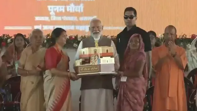 बरेका के मंच पर नए संसद भवन का चित्र देकर पीएम मोदी का स्वागत किया गया। इसके साथ ही राष्ट्रीय पक्षी मोर की प्रतिमा भी दी गई। पीएम के मंच पर पहुंचते ही हर-हर महादेव की जयकार गूंज उठी।