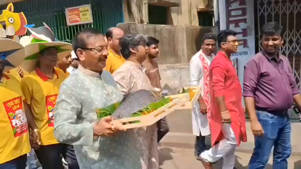 बंगालियों और मछली को लेकर ममता बनर्जी के बयान को झूठा साबित करने के लिए कोलकाता पोर्ट विधानसभा क्षेत्र से बीजेपी उम्मीदवार राकेश सिंह ने आज एक अनोखे तरीके से चुनाव प्रचार किया। बंगाली नए साल की सुबह, राकेश सिंह ने बंगालियों का पारंपरिक धोती कुर्ता पहनकर, दोनों हाथ में मछली लेकर चुनाव प्रचार किया। उन्होंने पोर्ट इलाके के लोगों को यह मैसेज दिया कि अगर भारतीय जनता पार्टी सत्ता में आई, तो मछली और मीट खाना बिल्कुल भी बंद नहीं होगा।
